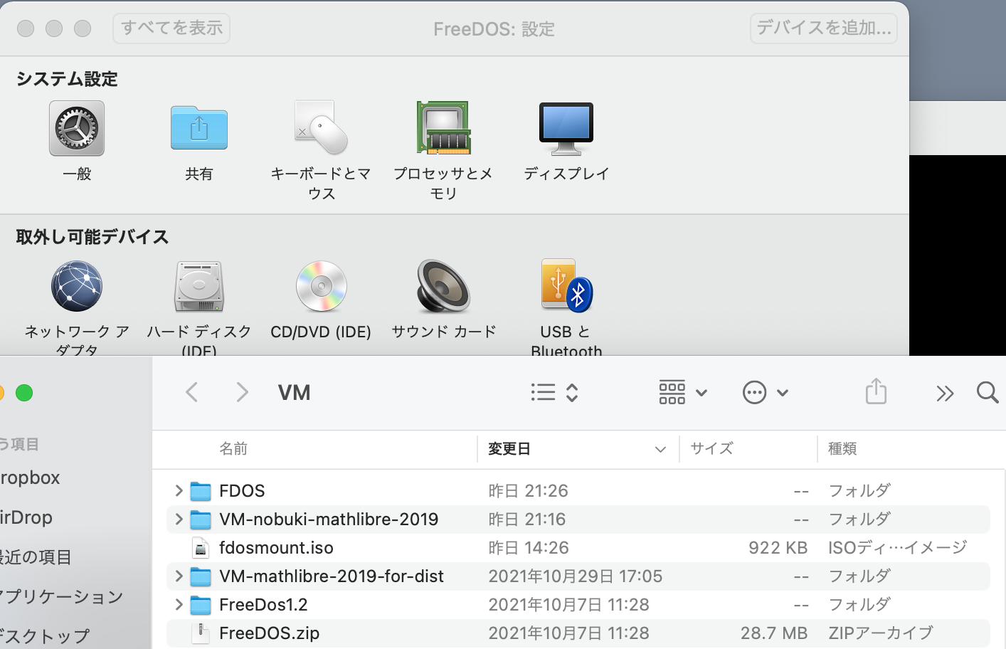 - ~/Desktop/VM に フォルダ FDOS を作る. これが共有フォルダとなる.