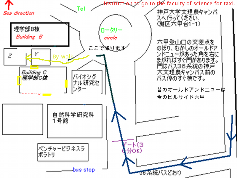 When you take a bus, get off at the 3rd stop (Shindai-bunri-nougakubu mae).