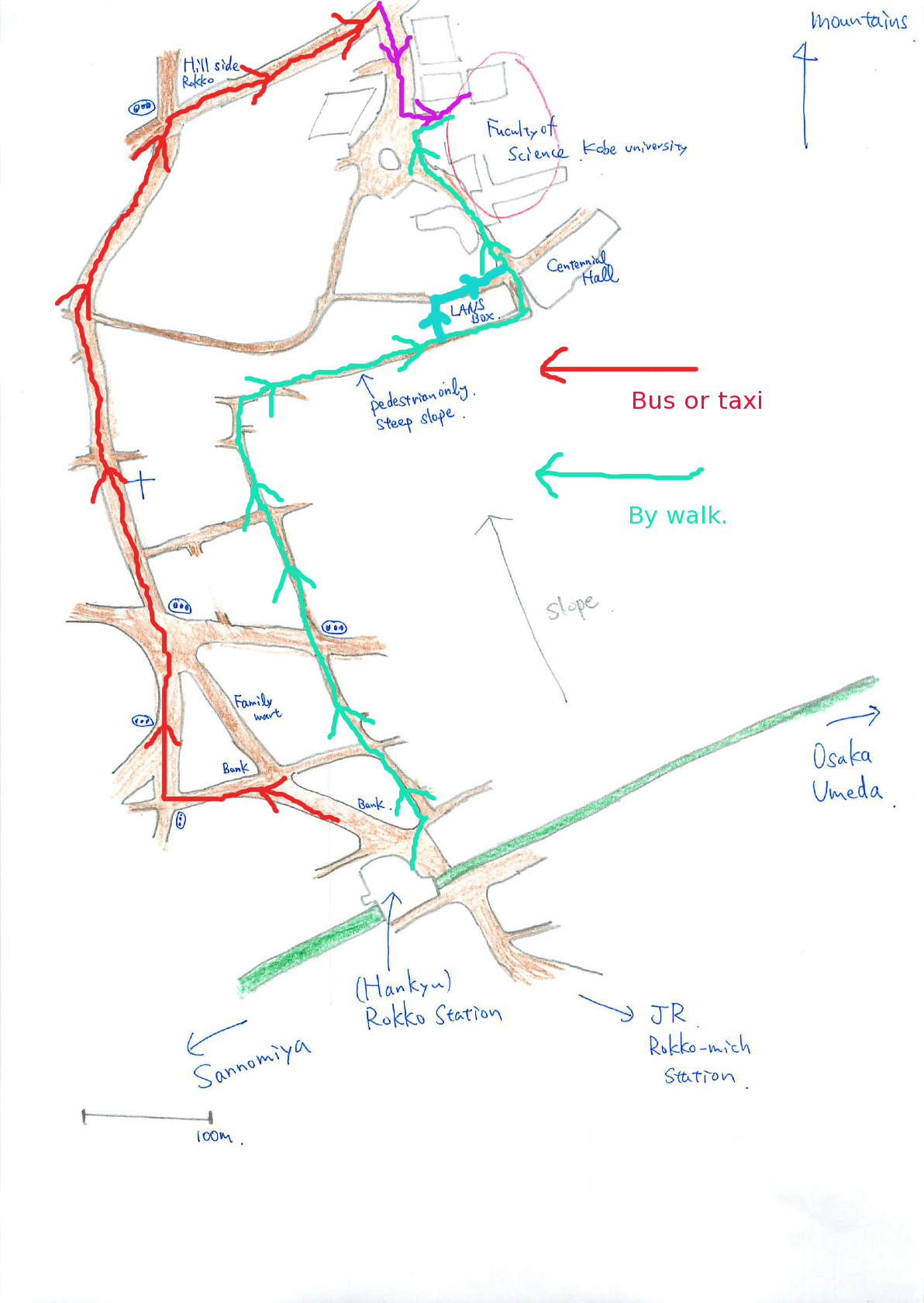 To come back to Hankyu Rokko station from the campus, we usually go by walk: