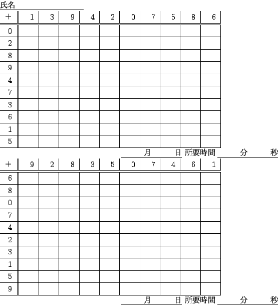 和, 差, 積の計算問題を繰り返し行う事で, 算数の学力があがるという. ここでは, この 100マス計算のプリントを作成する. "脳を鍛える..." とは違って, コンソール出力というのは無理があるようなので,印刷に特化した.